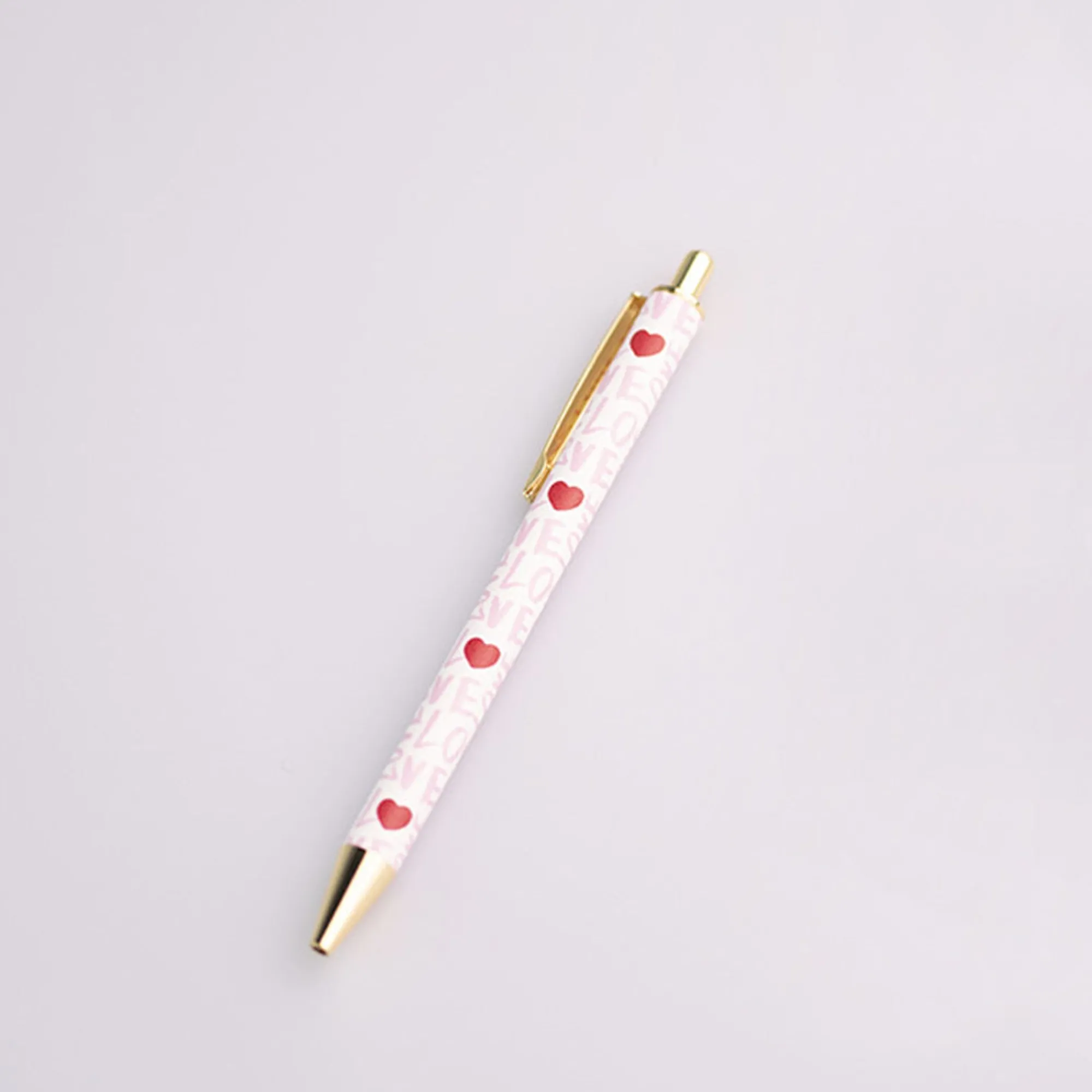 Penna Con Dettagli In Oro Ed Inchiostro Nero, In Due Varianti: Scritta Rosa Love Con Cuore Rosso, E Scacchi Rossi E Rosa.