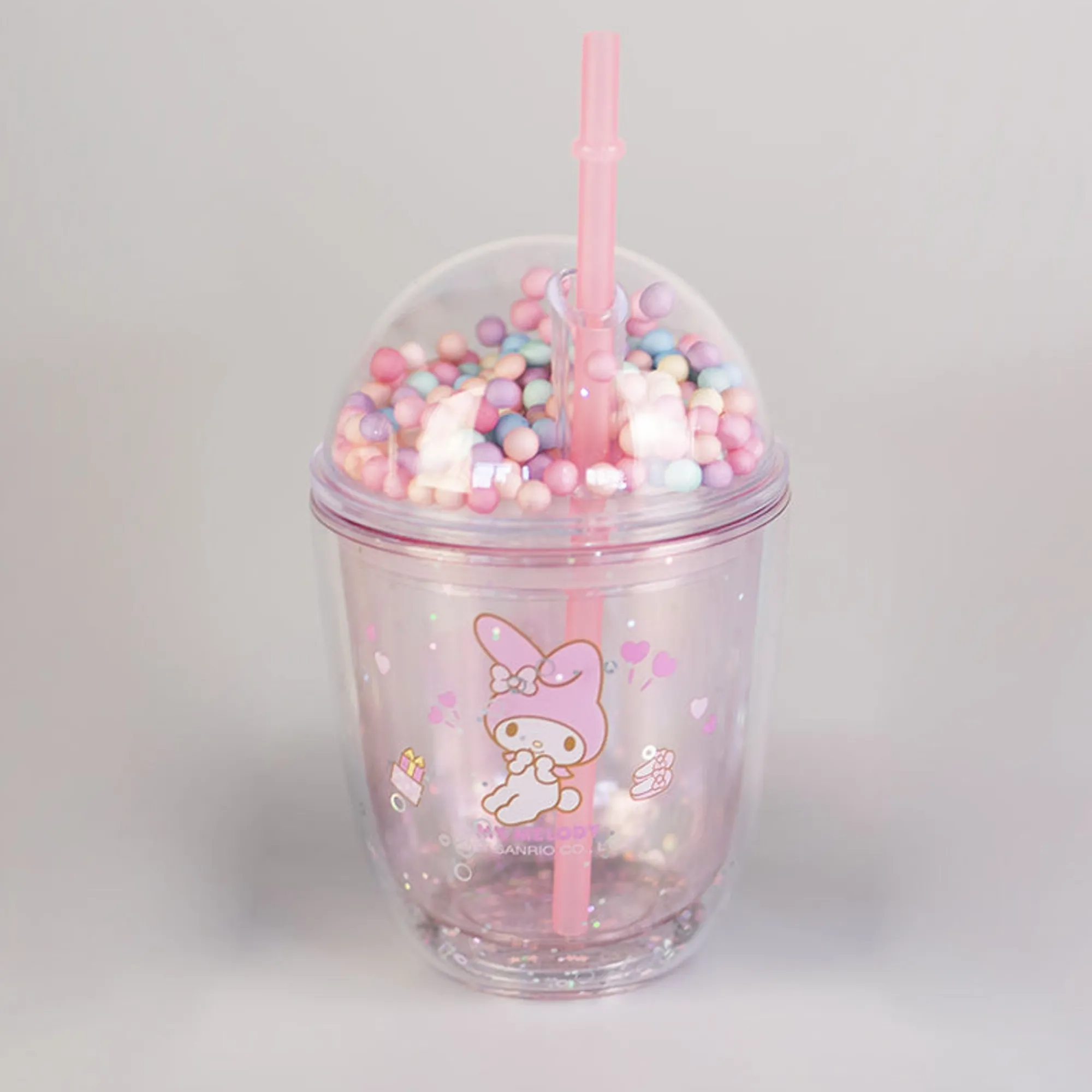 Borraccia Rosa In Plastica Dura Con Cannuccia Di My Melody Della Collezione Sanrio.
